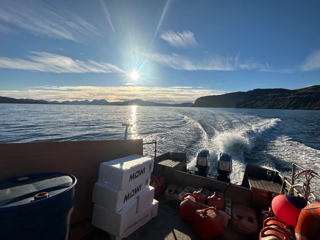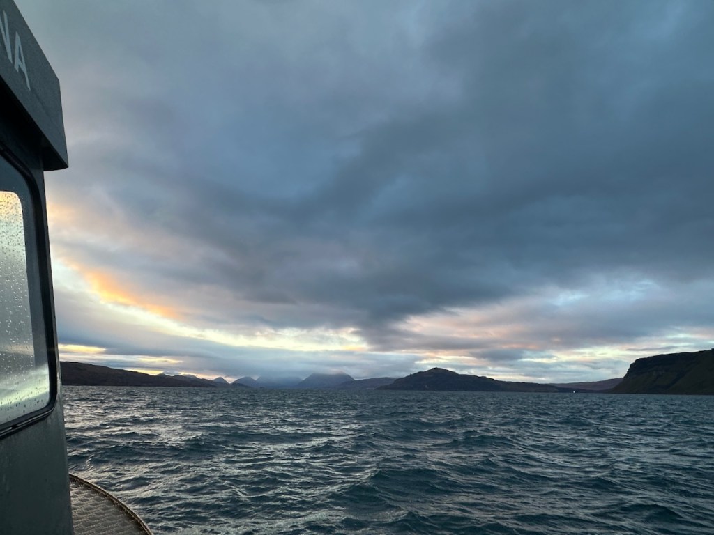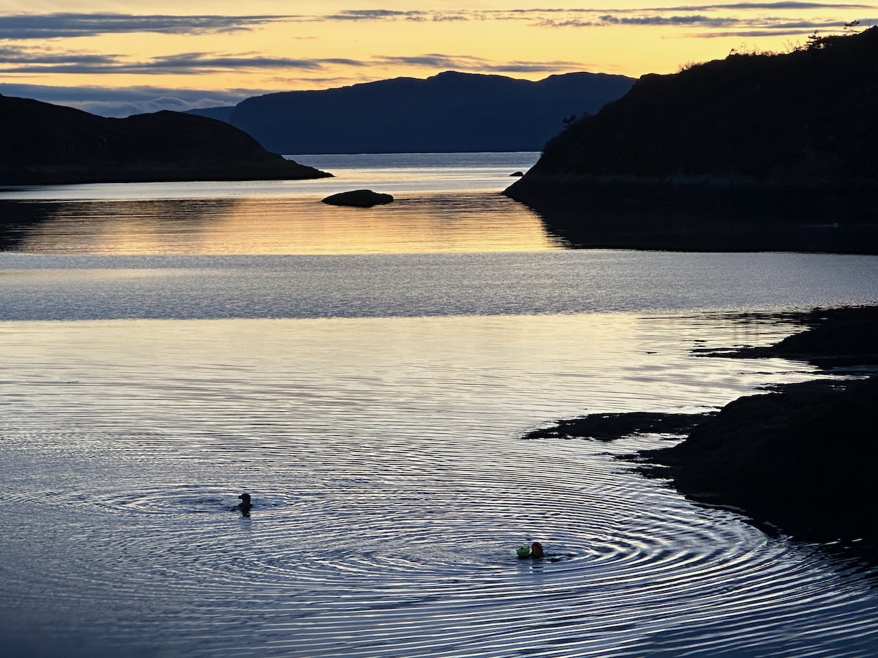 Venison delivery, fuel pick up, shopping for stores to-day and a grey day forecast? Well that was wrong, what a stunning day. Lots of wildlife about, Curlews, early this morning and lots of seals in the bay, rafts of seabirds feeding, porpoises everywhere, deer on Rassay and on the tops of Rona enjoying the sunshine. Two Sea Eagles perched on the shore at the mouth of the harbour. Topping it off with a long swim tonight in the sunset. Great to be out in nature, tomorrow looks cloudy for our day in the forest. But fingers crossed, good to see so much wildlife but no surprise on such a day. Nature is doing very well in this part of the world.