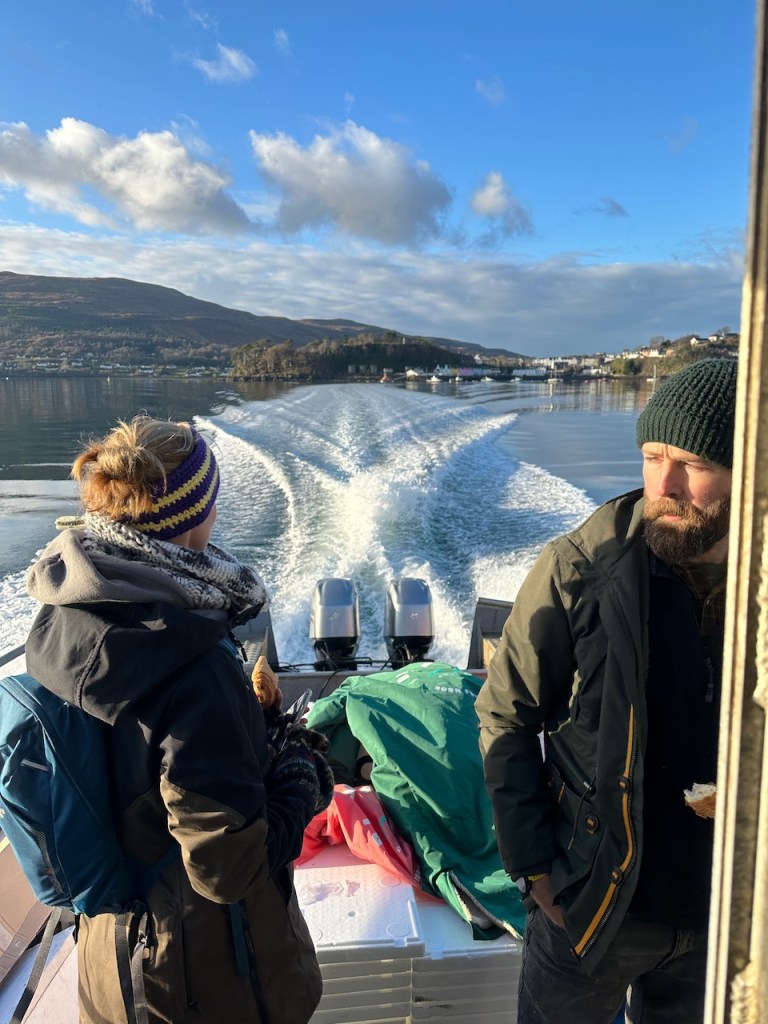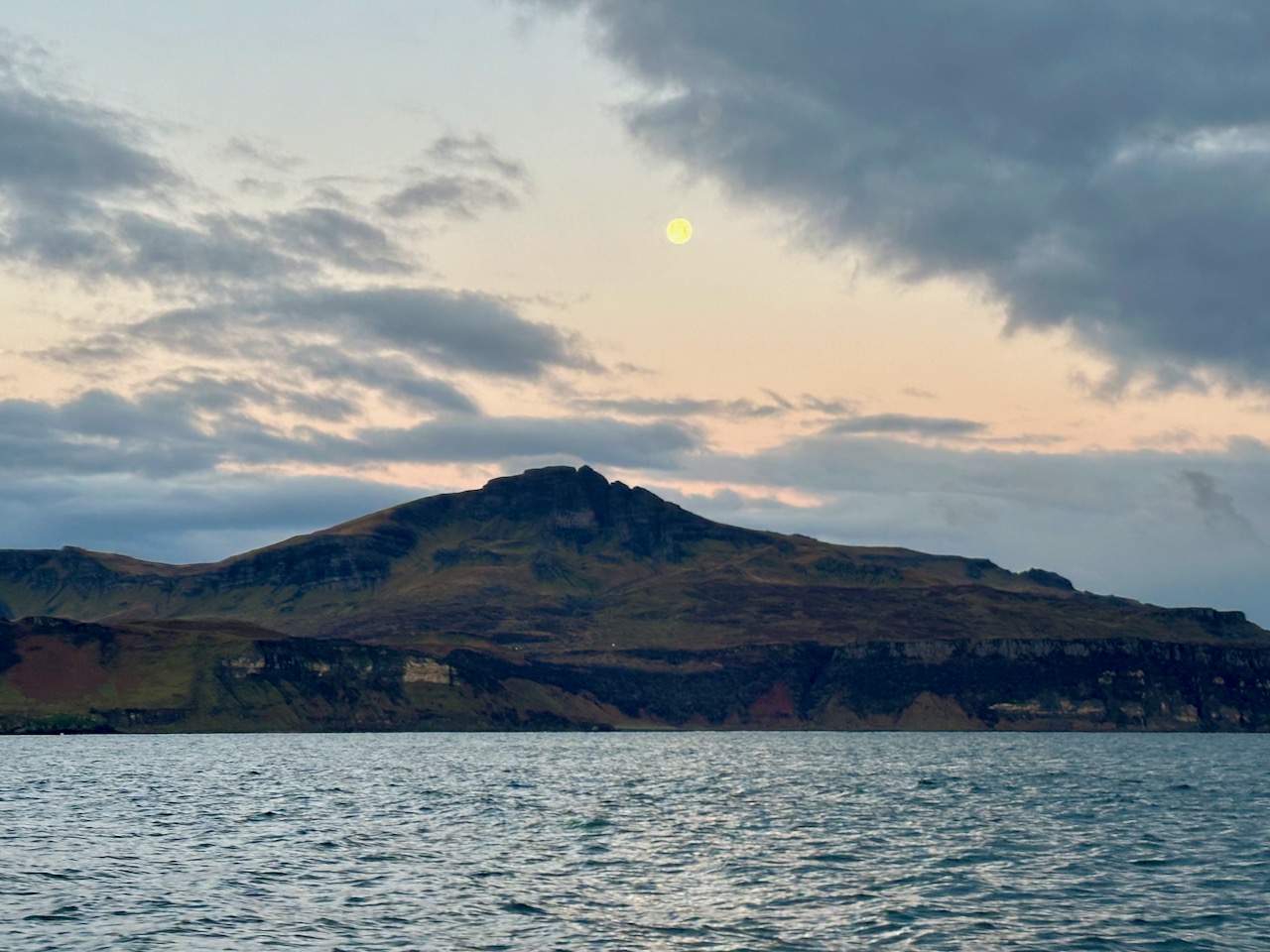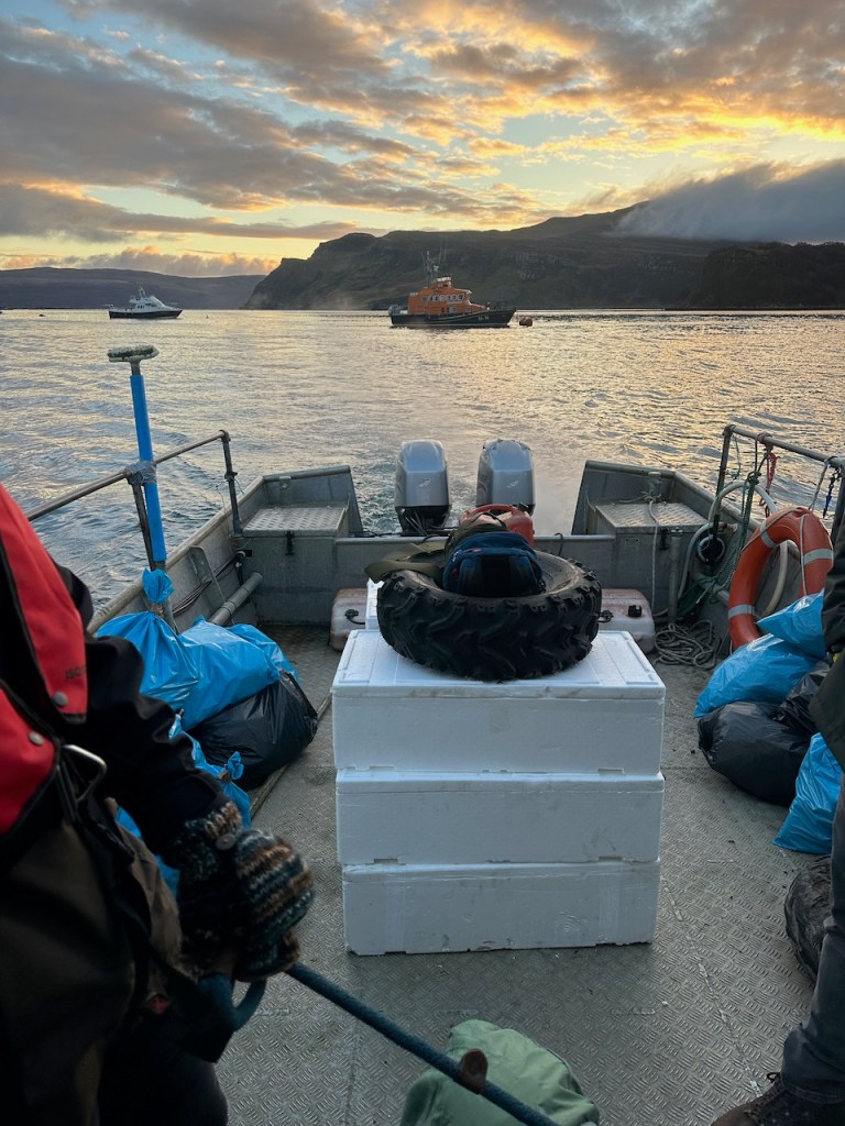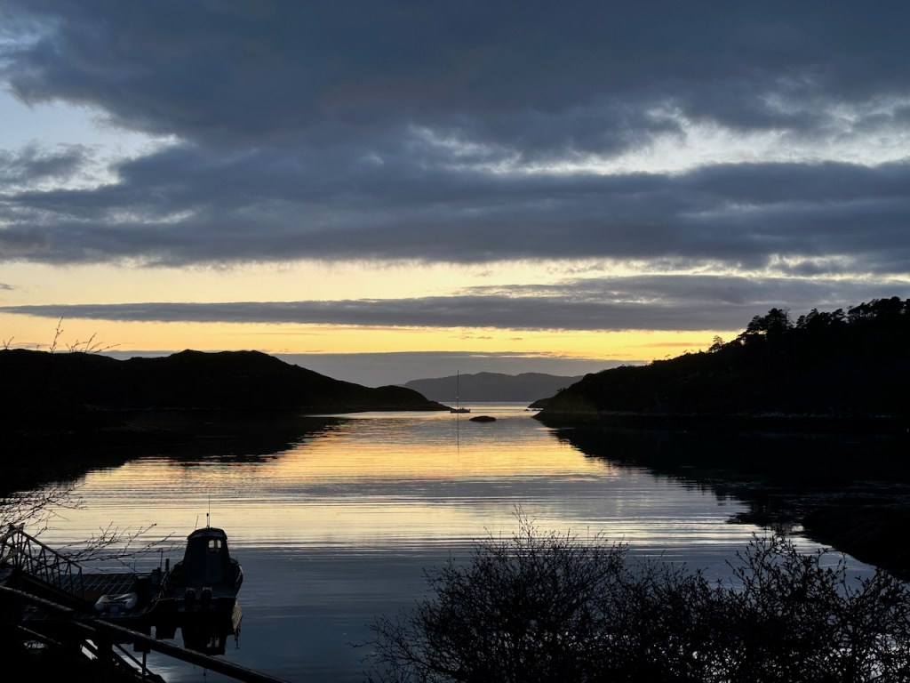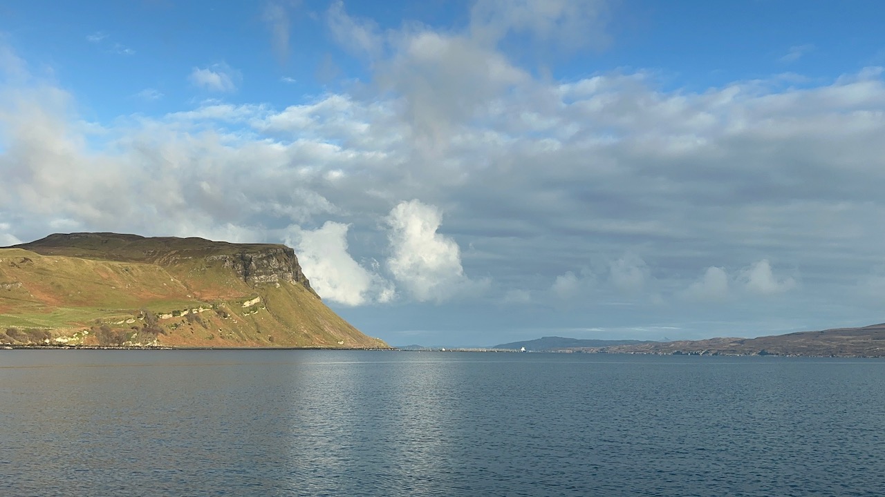 To-day’s shopping outing to Portree, the weather this winter is really behaving itself (for a change). Good to get some dry days and welcome sun. Not to mention flat calm sea. Very unusual. Mixed bag to-day, another load of Rona Venison heading to the mainland. A visit to the Vet. Shopping of course, new tyres, lots of post and the views to-day were stunning. Went for a swim and ended up dodging the very late visiting yacht Queen Bee 11, who was interrupting my swim. Got him sorted though.