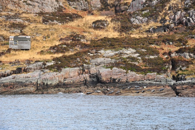 We crossed to the Golden Eagles eyrie above the wooden shed on the top West side of Raasay (now needing felt). Where we saw another haul out of seals, plenty of them about at the moment.