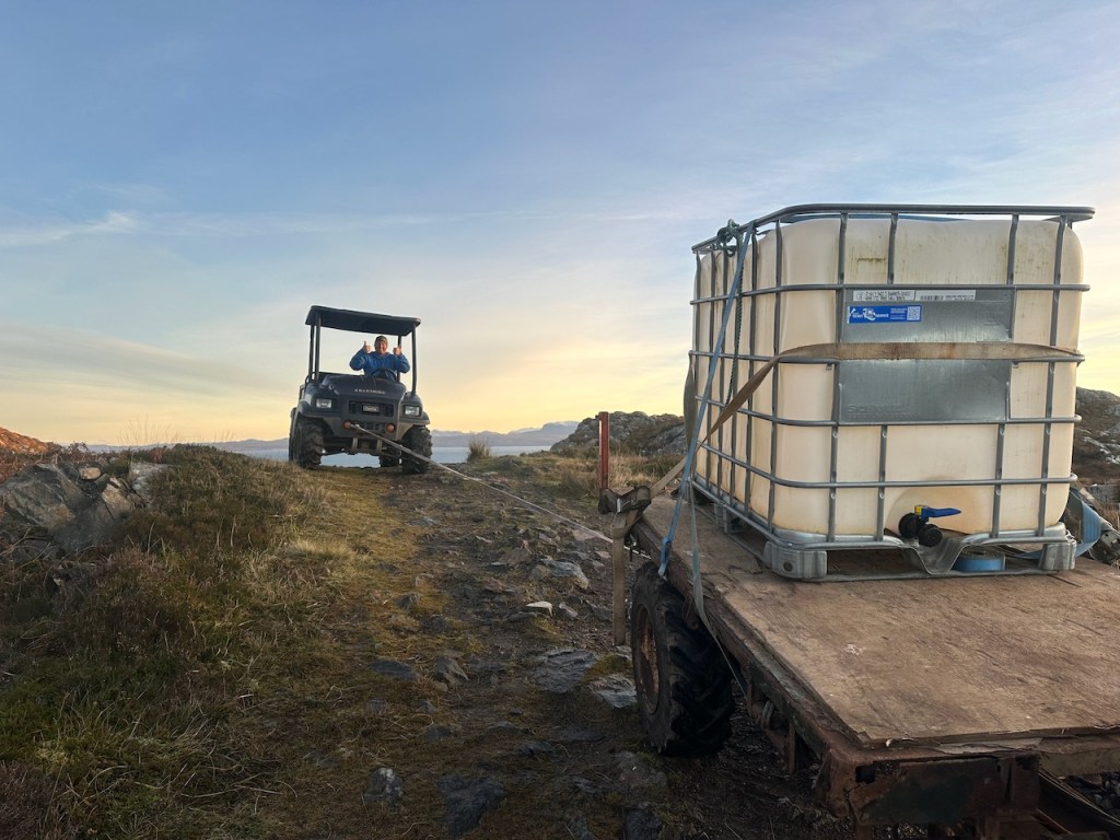 So when we went off to Edinburgh we dropped drums on Dan’s old boat, MV Stardust, Tommy took them ashore on our return from Edinburgh and we managed to get deisel in Portree and over to Rona, a get out of jail one. Since then 1000 litres have been delivered and now we await Kerosene from Dan. Interestingly the batteries despite very little wind lasted for our whole Edinburgh trip but they were on their knees by the time we got home and immediately put on the petrol generator.