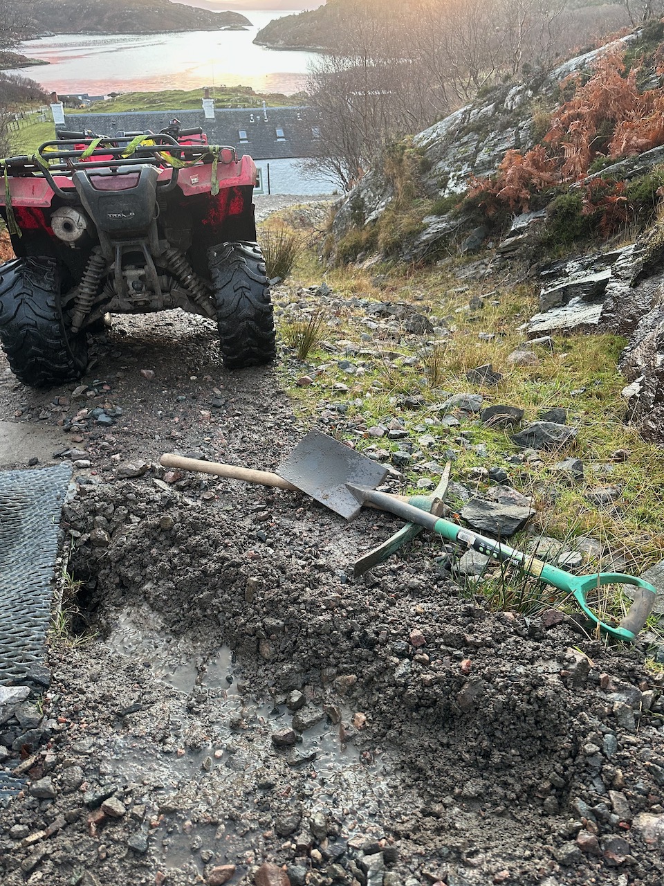Back up the road ion snow, the tyres of the Skodfa more or less useless, it was a long drive. Back to Rona and Christmas Venison orders were piling in, so some stalking and a lot of butchering