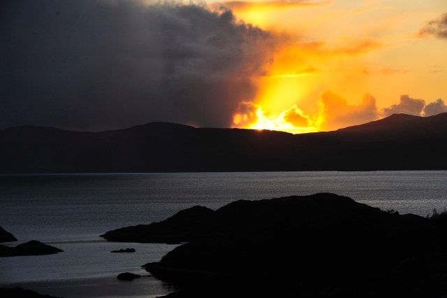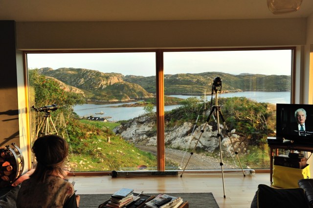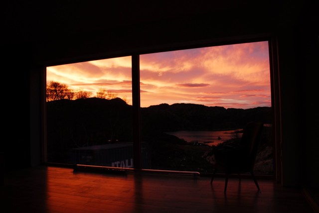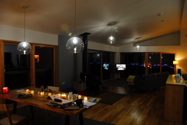 It is always a pleasure just to sit and soak up the view. Not so good tonight when the full gale is blowing, making the windows bend unlike the calm evening back in the Summer above. TV or The View? No competition.
