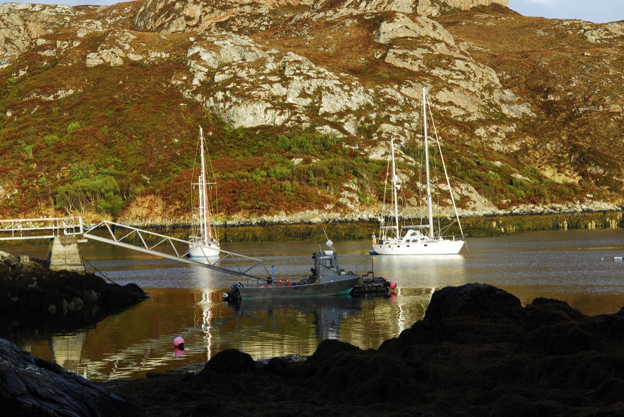 I got Claire sorted out with a promise to touch base at 9pm, then went fishing and returned to Big Harbour at 12ish. Kenny from Shieldaig had appeared on the horizon and he had bait for me so I headed in to the pontoon to see them. I was sorting out the catch and chatting to Kenny when this RIB with four on board arrived, for all the world like the Customs and Excise, but it was just the four florescent jackets they were wearing that threw me, not that I had anything to hide!!!!!!!!!