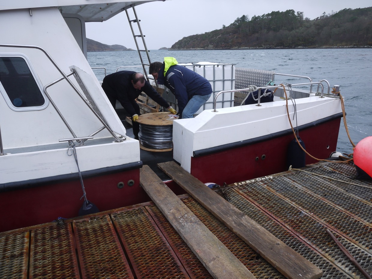 Dan had been on the phone looking for pipes to rest the MV Stardust on when it is on the beach, we are happy to oblige with the feed pipes and fish farm walkways that end up (often) on Rona.