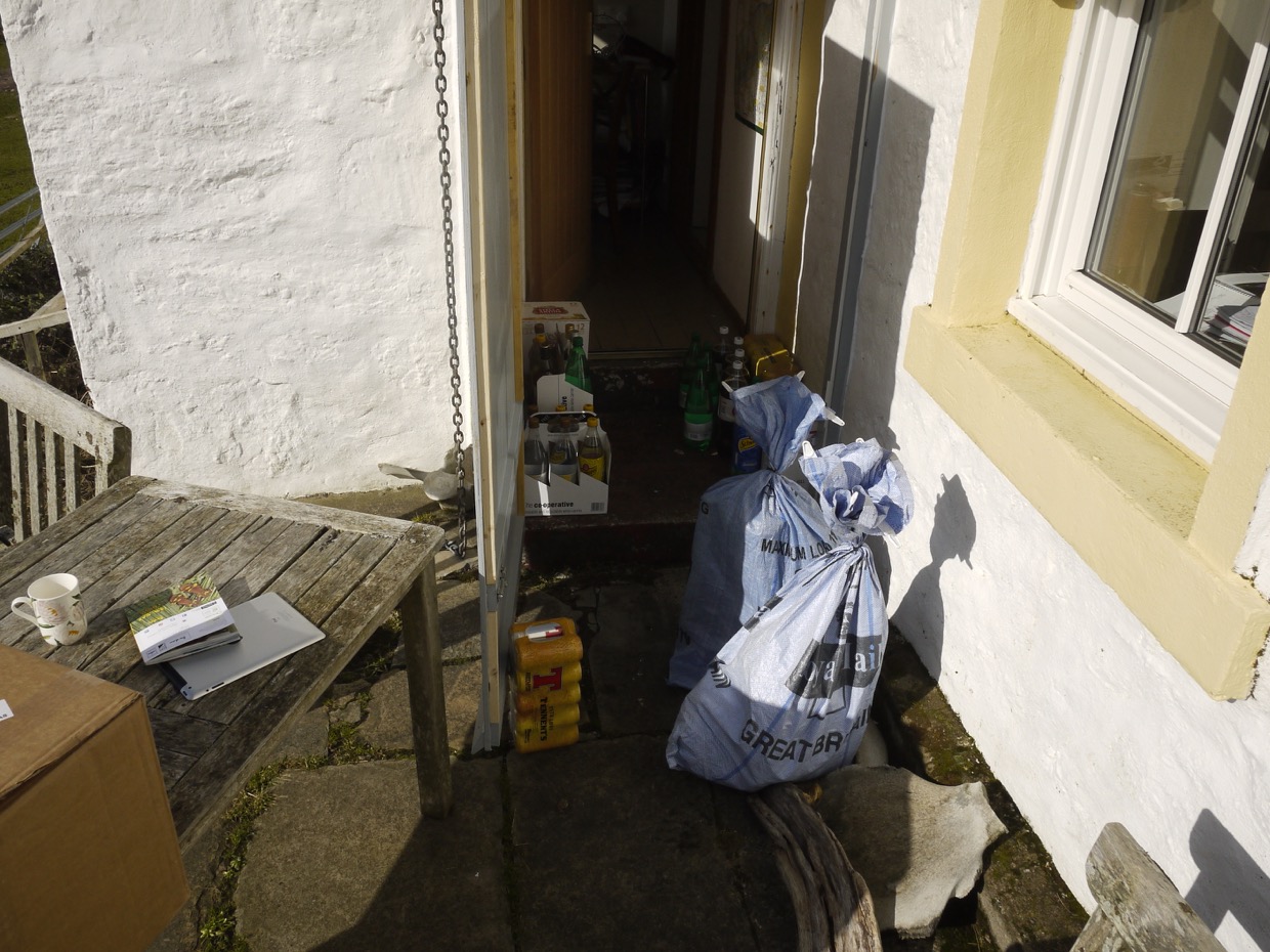 The water had been a bit slow in the house in the morning and when I finished for the day, Wednesday I think, L reported that the water had ‘just’ stopped. So back on with the wellies and up to the water treatment shed. Sure enough, half an inch of winter peat sediment had fairly choked the sand filter in no 1 tank. Nothing for it but a changeover to the emergency supply then plan tomorrow’s cleaning.