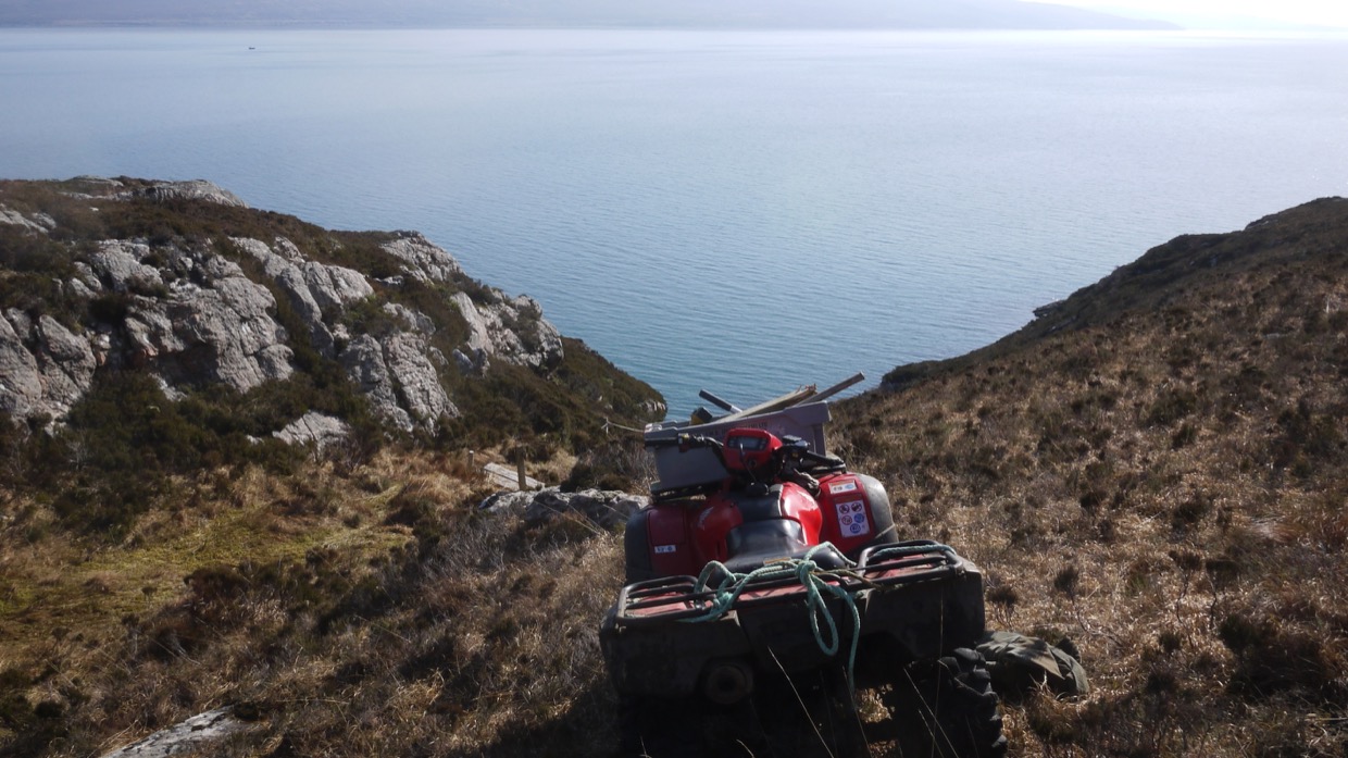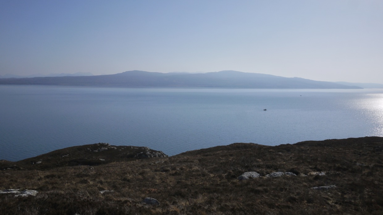 I saw a stag or two out on the Islands between us and Raasay, there is some good grass there and they don’t mind swimming back and fore for it. Simon’s passing fishing boat did not even make them raise their heads. We had had Dan out on the catamaran on Sunday and Kenny was coming off the cradle at Kishorn after their winter re-fit with his South Boats Cat’ so he took advantage of the calm weather and stopped in for a blether, good to see the boats re-appearing.