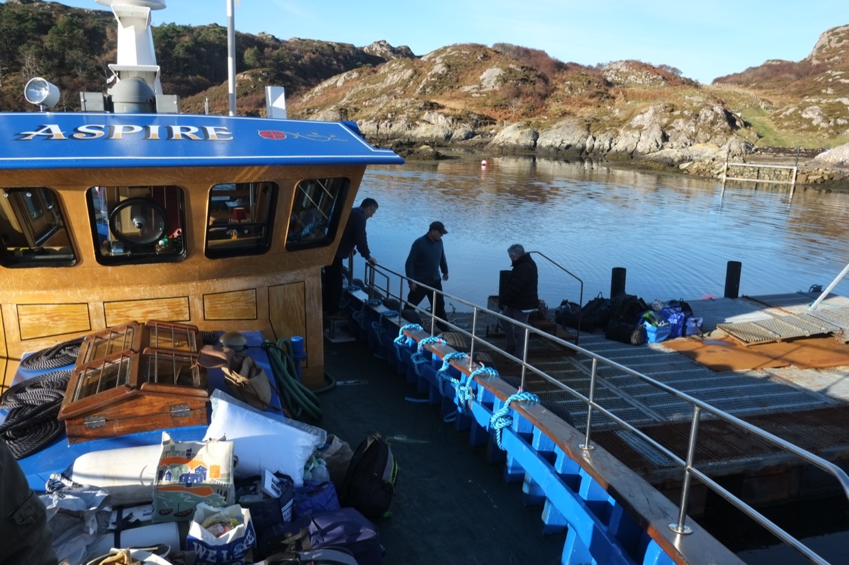 25th January and the gales keep coming. Dodging between the high winds we were able to get Mike and Lorraine out to Rona, 5 days late and we were able to get away for the first time since the 10th of December. The crew of MV Aspire were off to the Alps skiing so MV Stardust came out, sods law. It was flat calm (ish) in the big scheme of things!!! But yes a stable sailing which we were happy to enjoy. The colour was fantastic and after such dreich weather it was good to see the long views again (Briefly though).