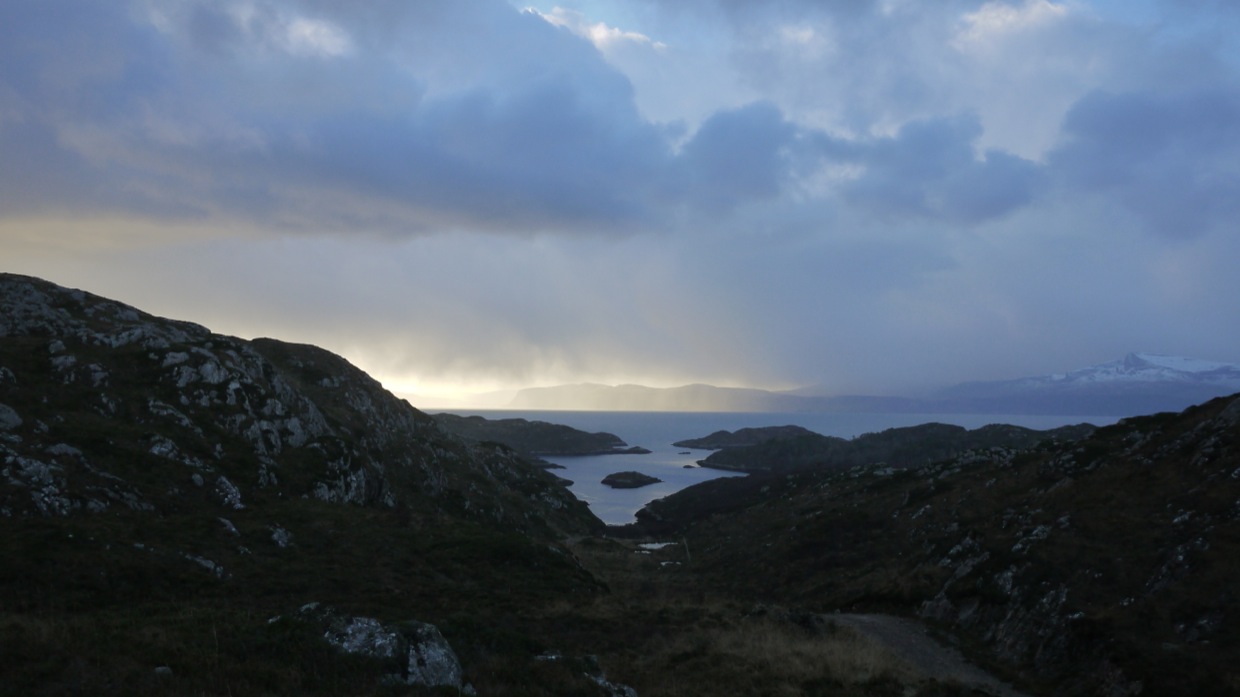 Yesterday ‘Sunday’ was a belter, continuous rain, wind and dark. All you could do was let the hens out, feed the sheep, get the firewood and spend the rest of the day trying to keep warm. Which was not a bad thing as we both got a lovely cold in Edinburgh ( not from Linda who had one too during our stay in the Howard). Ours seems a different strain for sure. But to-day Monday it seems to be on the way out. Last night we were watching TV and we have two systems, one for recording and back up the other the Sky TV. The recording dish would not work in fact it has been troublesome for a while. A walk out in the now black, dry less windy night confirmed yet another bit of damage to add to the 123knt wind, the LMB was swinging around. Rust then blown off the dish. So I guess that is the next job, then up the hill to see what is what with the Applenet BB. Just another typical day on Rona.