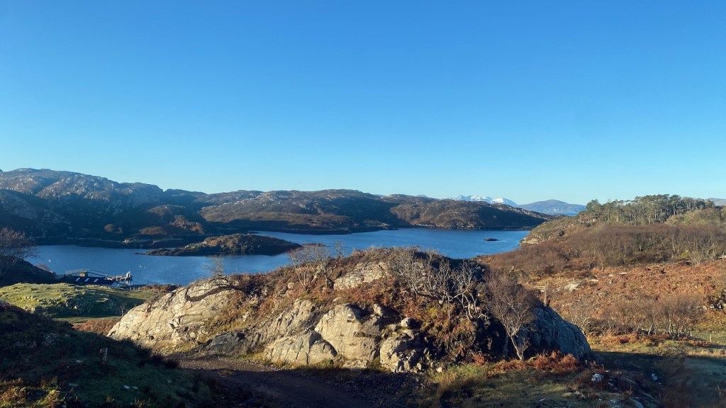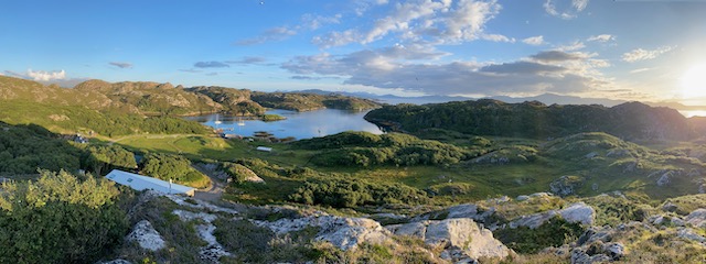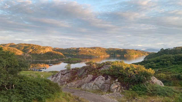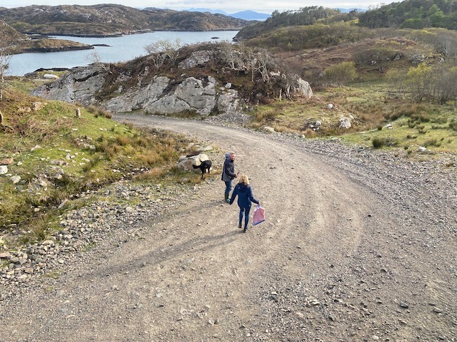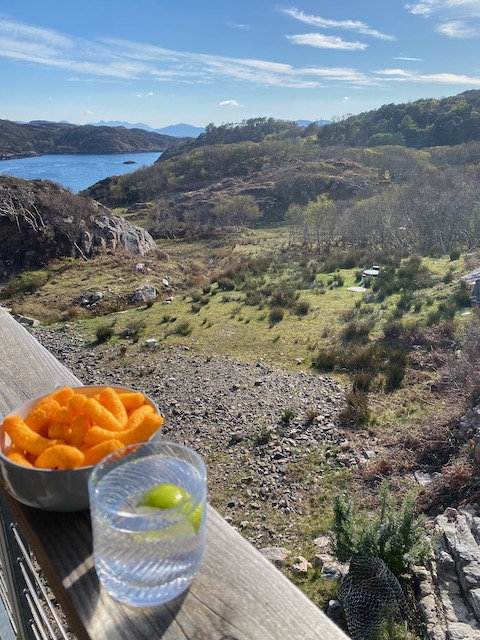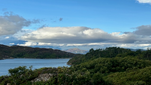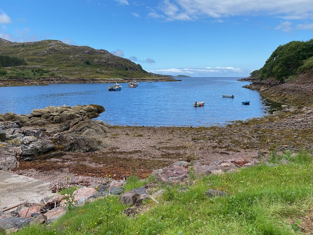 Lorraine’s birthday last week so a trip off, first stop Donnie’s tablet shed. Had a tea, took in the views and then battled with tourists to Kinloch for lunch. Was a really lovely lunch on a beautiful day. Then onto Shieldaig for a couple of days. Walking on the beach, having a drive around then more food in Shieldaig Hotel. Which was equally as good. The Camper Vans were out in force with 15 to 20 in a train in Lochcarron Wednesday, Italians, just great!!!!