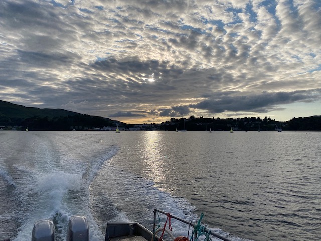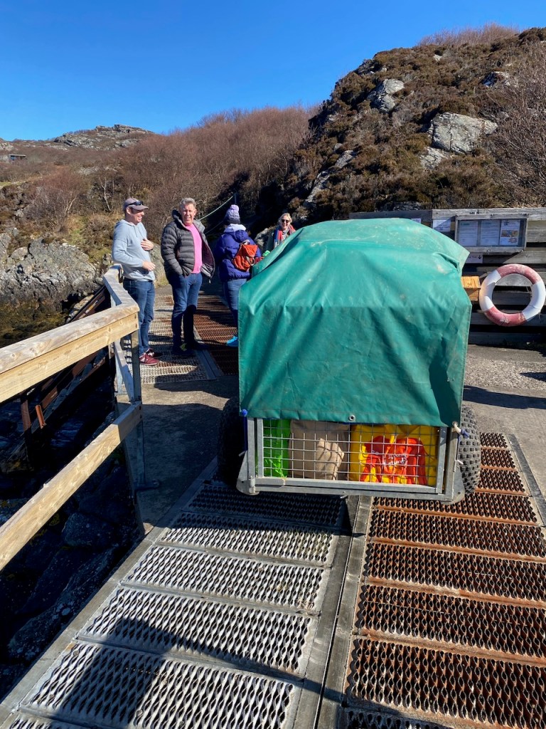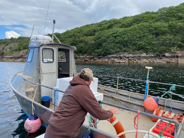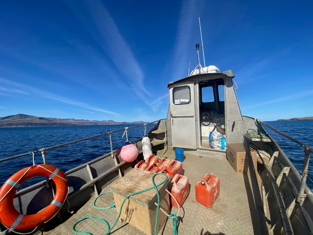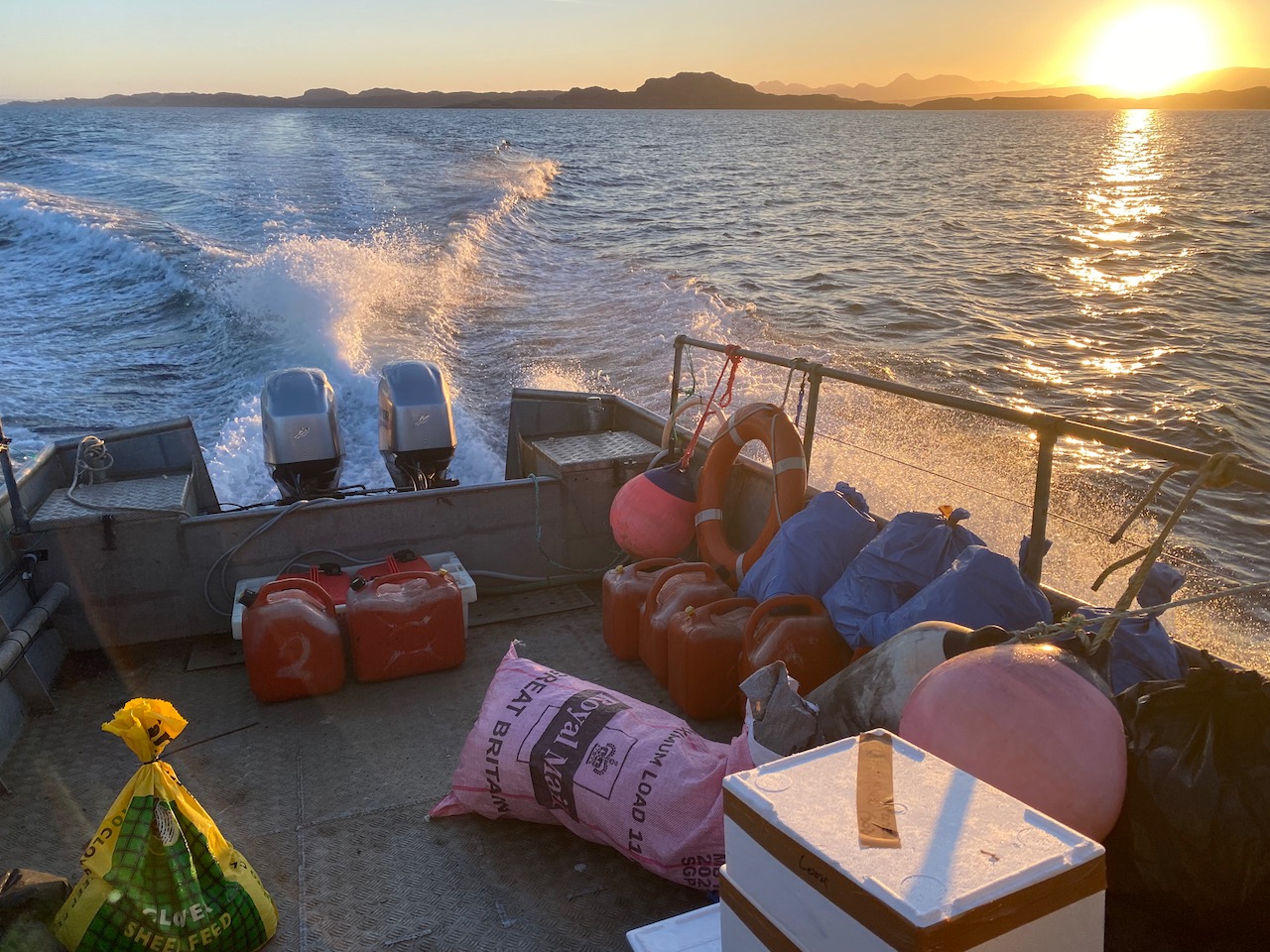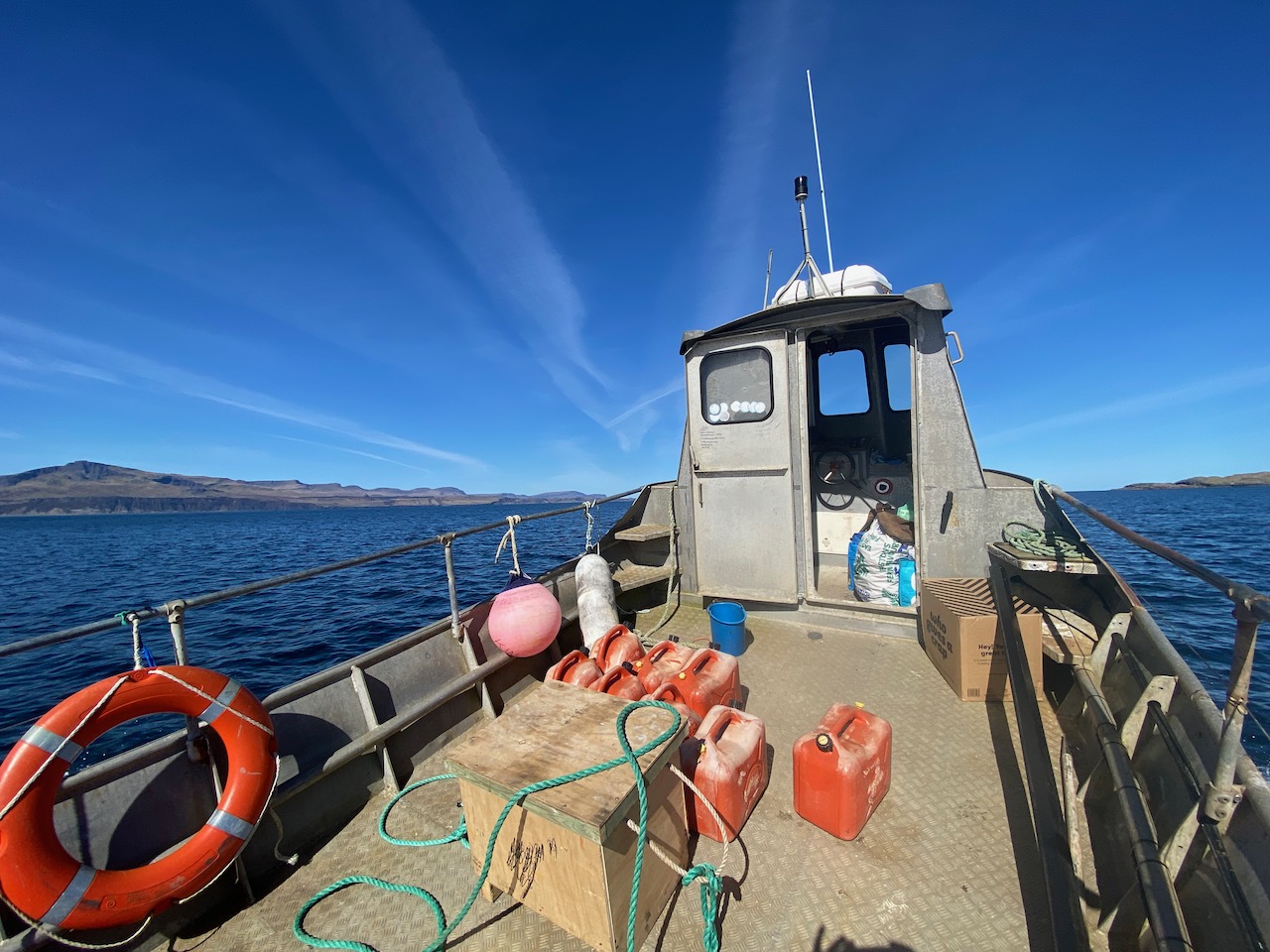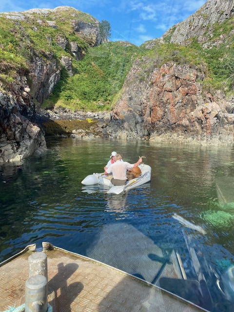 Finally a changeover on Saturday our first this season and with help from John and Stacia, up to try out Rona for a week. All went well, flat calm and ably skippered home by Willie Beedie standing in for MV Seaflower’s crew.