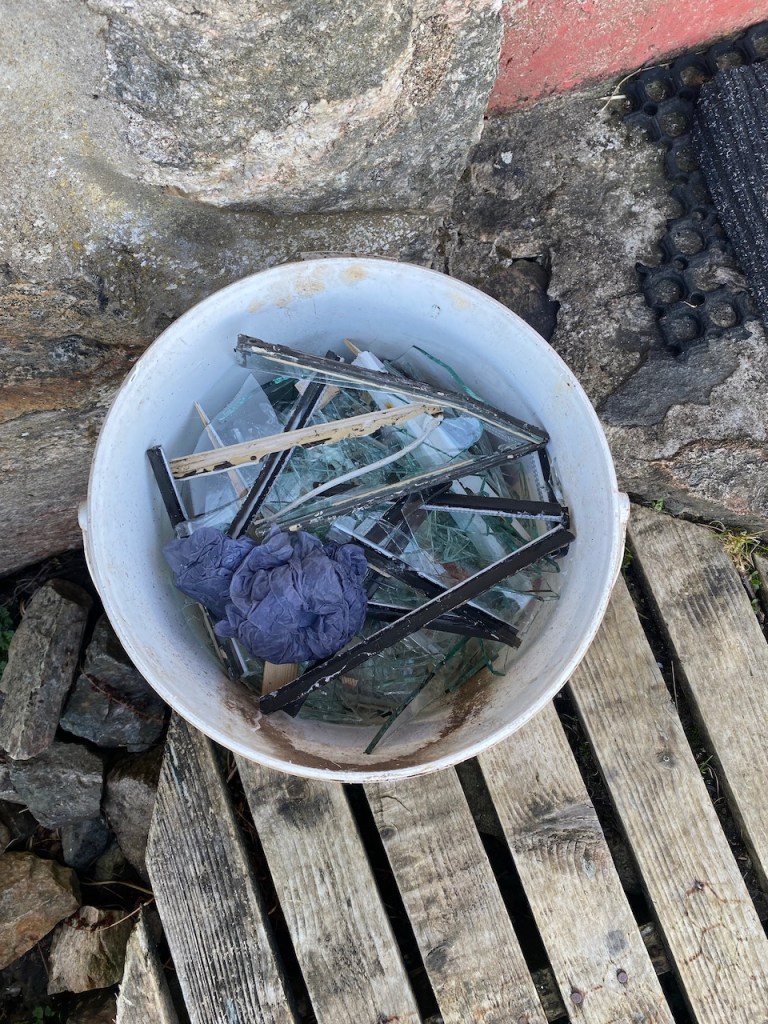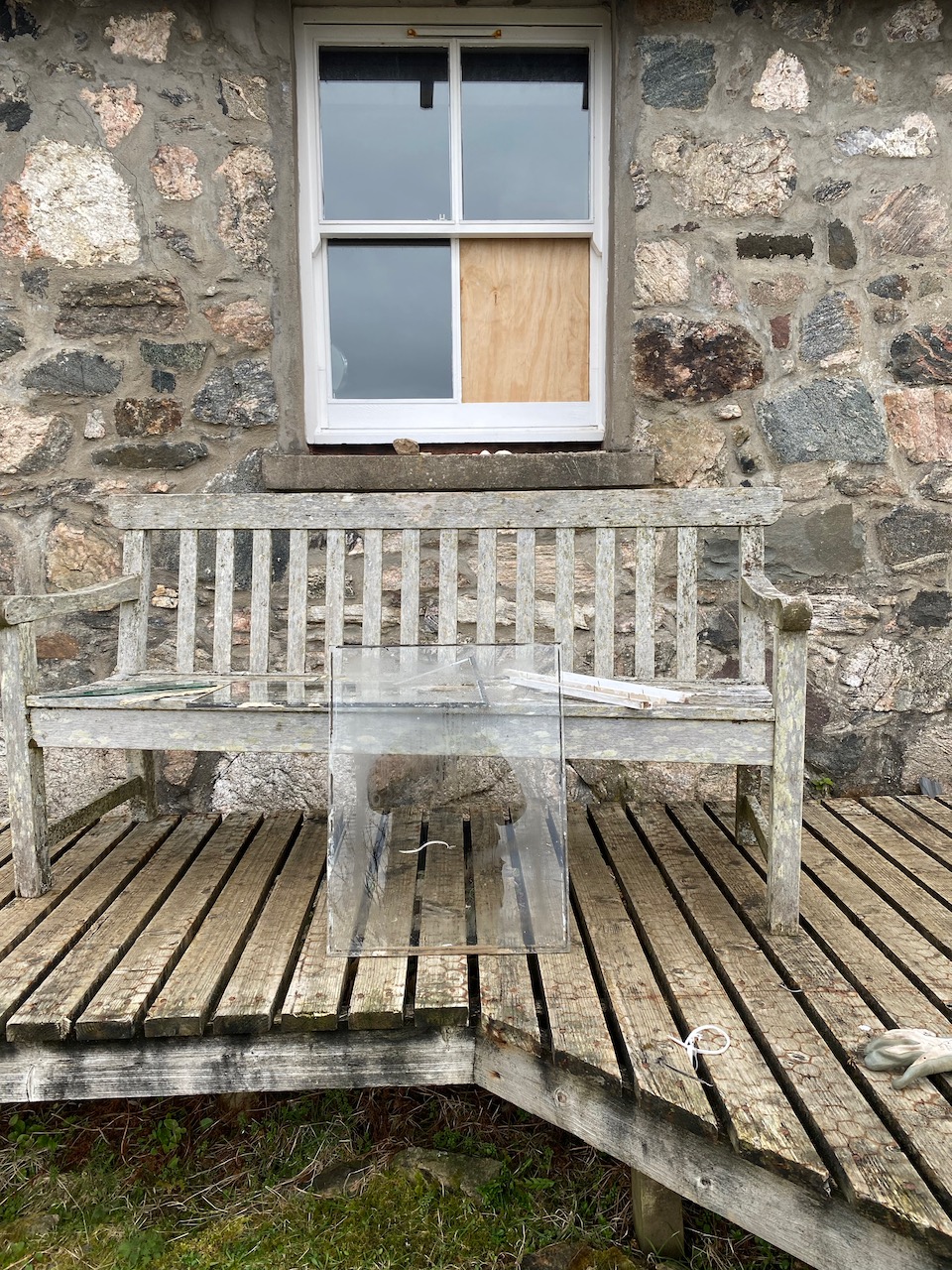 4 weeks before the season and multiple disasters. First of all the generator (Stamford) alternator burnt out. It had to be dismantled and packaged, sent to Fraser and MacDonald’s in Glasgow. A very old firm by the look of them. But fast in their turn around (with help from Skye Express) and to-day the whole thing is back together and starting automatically, charging the pretty low batteries. The long awaited replacement glass was bought for the cottages but once we took out the panes we were left with one complete side, the other breaking. So waste not want not I put the old single’ pane back in. We had a gas leak and it was pretty hard to find, the washer in the cap on the opposite side of the intake had leaked, do not know how but it was puffing out propane gas. New gas alarms have been bought and installed.