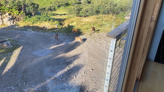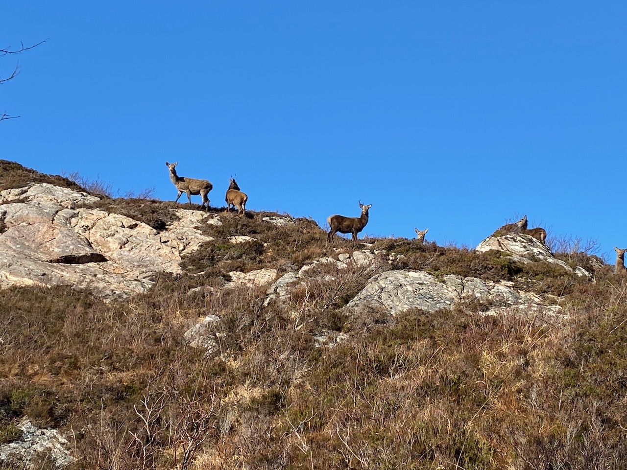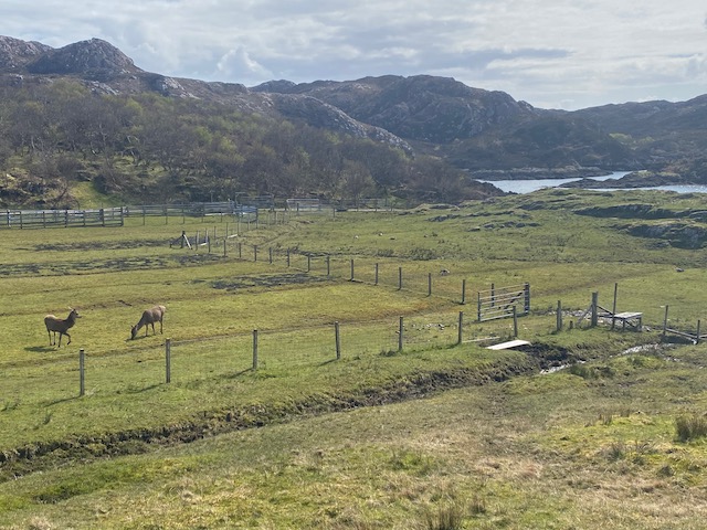 We have had several couples up to view the ‘job’ all going well but we want to be sure we have the ideal couple to help us and we must say our visitors so far have all been very good and that leaves us with a dilema. However we have a few to go and this all takes time so we think we will have to get some temporary help as it will be a while before we can make a decision. In the meantime we will keep the head down for the forseeable. We took a visiting couple down to Fladda to check out the cottages before the owners and their family came up for Easter. The deer seen on route and the family around our house are pretty hungry just now.