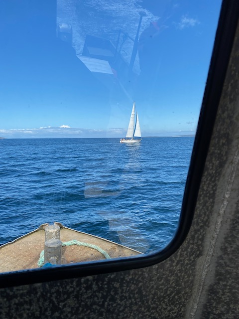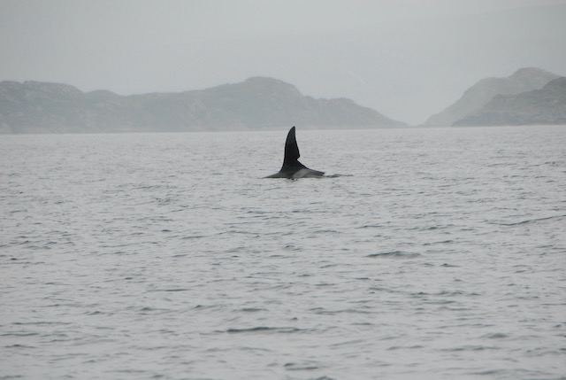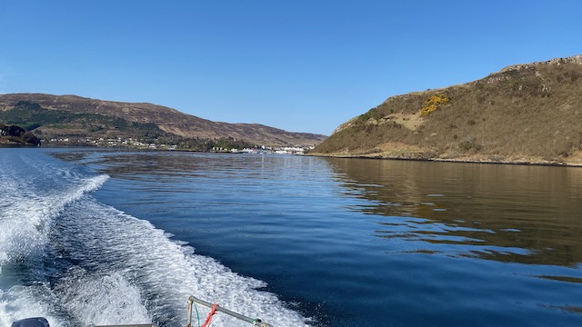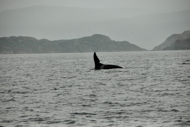 Then a text from Ewen on MV Seaflower to tell us that there was a couple of killer whales outside the harbour (Somewhere). Nothing for it but to drop everything, gather up Rona folk and head out into the Sound of Raasay to see if we could hook up with them.