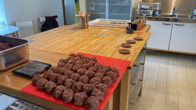 We were lucky to have some whole haunches (quite a lot in fact) stored ion the freezers and when the order came in for burgers we had the venison to make them. 750 to date!!! From the 15th March. Plus the trimmings for Venison Dog Food, top quality at £4 per kilo, very heathy for dogs, as recommended by our Vet Rhona Campbell. Portree of course bones too.