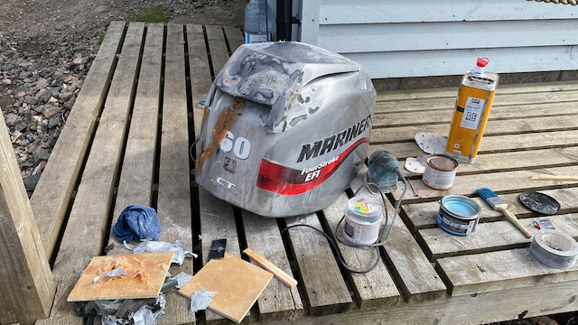 Finally got MV Rona antifouled. Made no difference I have to say as it was pretty clean anyway. Back to Rona after a Portree Dash with rubbish and venison (more burgers), then back to a lovely evening despite being grey.