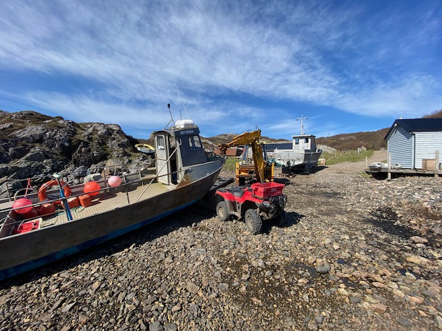 We had a glorious calm Sunday a couple of weeks back and decided to visit Shieldaig, it was a good run out and back, it is not much further than Portree but we only went to Ardheslaig. Kenny picked us up treated us to breakfast and gave us a pile of boxes for our venison orders, back home we went. Well fed and enjoying a very relaxing day. Called into the Base for a mooch on the way back, nothing to see here.