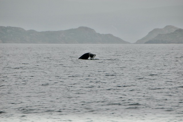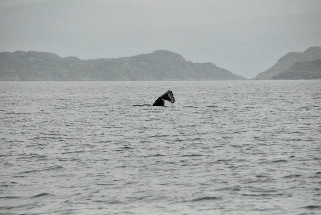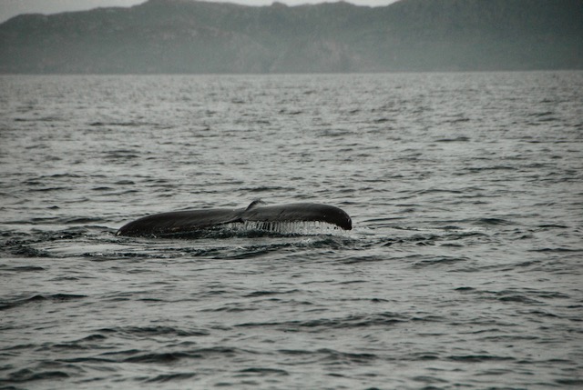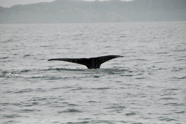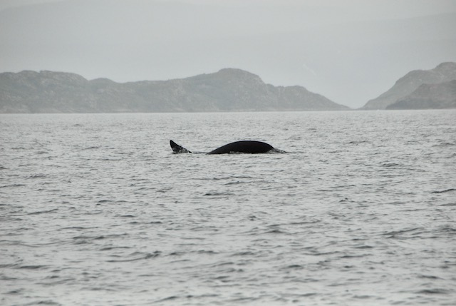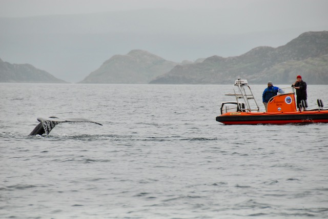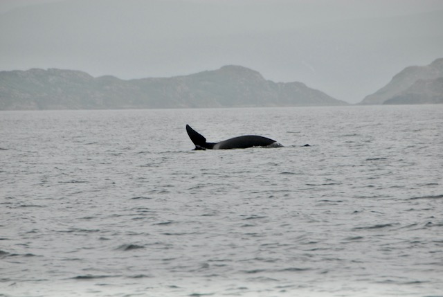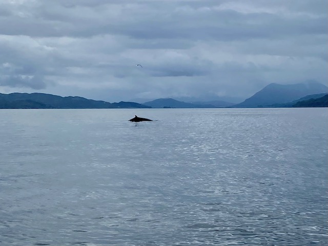 Bryn (the spotter) saw a RIB stationary and two fins sticking out of the water just North of them. We headed for them and spent some time watching two killer whales lazily swimming around. A shout went up and a Humpback whale was spotted further North. The Killer Whales had disappeared so we headed North and the Humpback was very accommodating coming very close to the Rib and MV Rona, a truly magical experience for all on board.