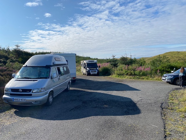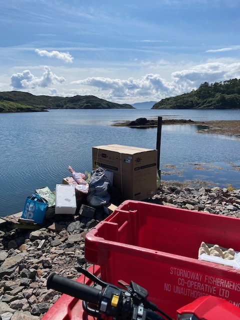 Another trip, another purpose. Shopping this time but trying to sell venison and dumping the old freezer, reluctantly, also collecting or being there to take delivery of a new freezer. Delivering on the high seas another box of Rona venison for Raasay and a wee visit to one of the forests we have on Skye to wind up the Camper vans. Who have an unofficial campsite in the entrance. We arrived paced the place out, for a joke I said I was here to collect, then a guy fell out of his camper and produced his wallet, only joking pal!!