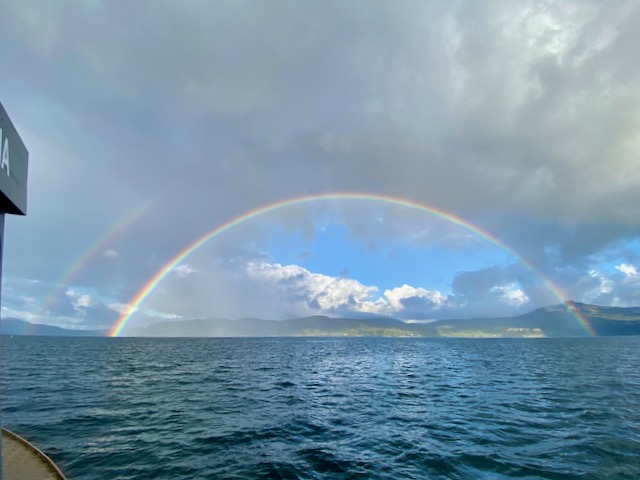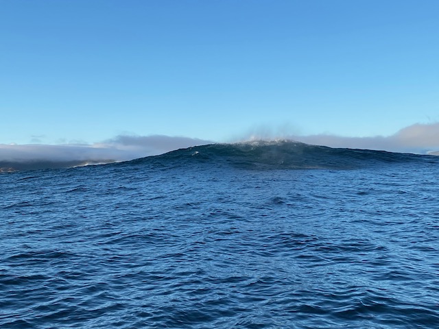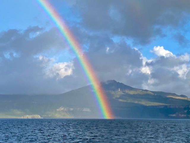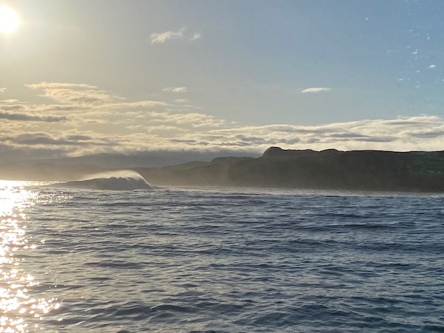 Yet another trip into Portree, this time loads of parcels, more venison for Raasay House, great morning rainbow with a huge swell in the Sound. Low tide and the Big Wave at Greinisgeir was showing off. Very impressive.
