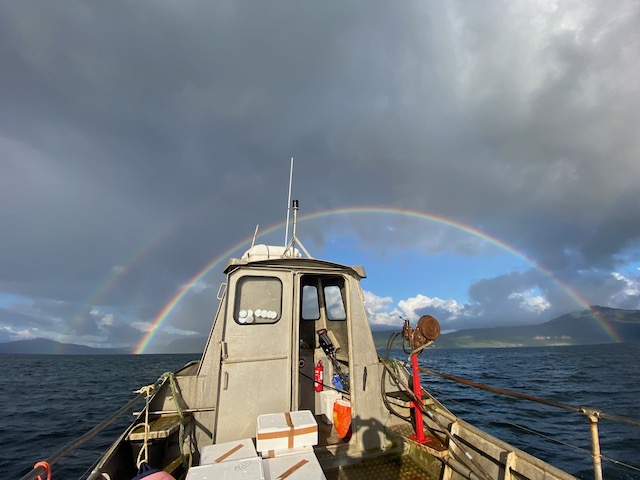 In no real order, This will take me up till mid September. Venison production in the new larder going well, A visitor from Kuwait off M V Seaflower fell heavily and broke his leg (twice), new freezer arrives, plans afoot for a solar array at Dry Harbour. The weather improved and there were many boat trips to Skye and elsewhere. My sister got married on the hottest days of September. Bryn and Gill were helping for two moinths, just before Stacey, Grant and their family arrived to stay. The Bay getting quiet after a busy season with over 450 yacht night visits.
