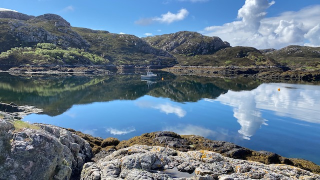 Yachts had been steady, a trickle had become a flood with 6 or 7 yachts in last weekend, the sun was shining but it was Northerly, so a lot of yachts were not coming North of Mallaig. I thought Tryptich had anchored but on closer inspectioon I saw that he had bridled the strop. Just checking!!!!