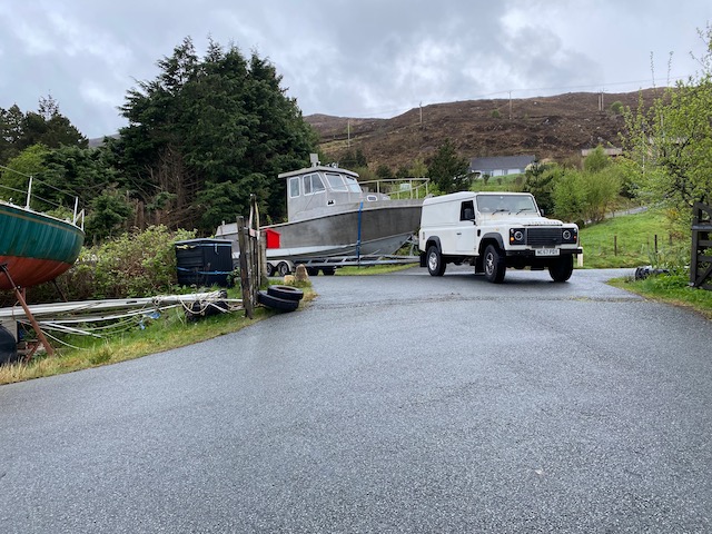 May started where April finished with a trip back down to Stranraer to look at a new aluminium boat. The 6 and a half hour drive was tiring but it was worth it as the boat was good. We made the deal and John Mitchell the owner offered to deliver. So here we were on the 5th of May taking delivery at Strollamus boat yard.