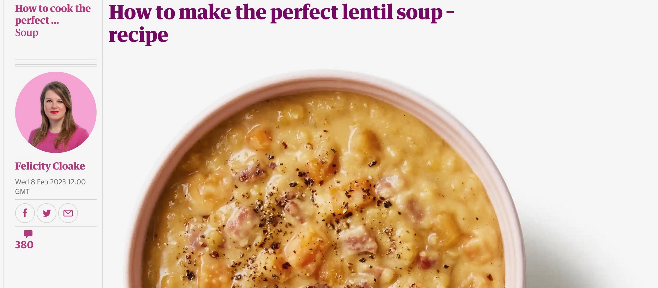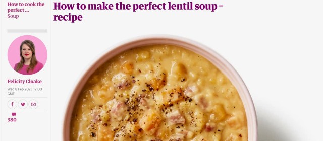 I wondered why my blog stats’ went through the roof the other day and I was delighted to see that a link had been attached to the SWRI Cookbook on my recipes page in the Guardian by Felicity Cloake on Lentil Soup.