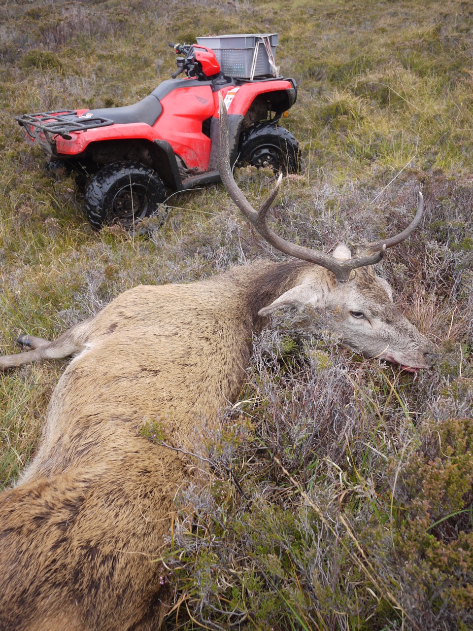 The stalk was long and arduous but satisfying to get have a successful end, now the hard work begins with the gralloch, the long walk back for the bike and trailer and the larder work to follow.