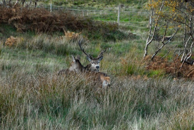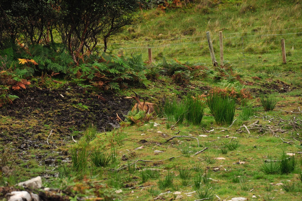This young stag keeps popping up, seen at the side of the road on route to Dry Harbour one morning last week, he was right at the South end a day later lying up looking very relaxed, no interest in the rut.