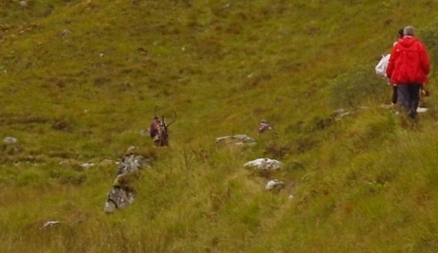 He was not bothered about the various passersby on the track. He had other things on his mind! By the end of the season it is good just to leave the stags alone to get on with what they do, a month or so of rutting takes its toll and they are pretty tired and I guess easy prey for the unsympathetic stalker.
