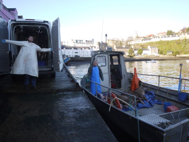 First thing with pretty fuzzy heads we loaded the carcasses onto the MV Aspire and away our guests did go, heading for House of Bruar on route to Edinburgh.