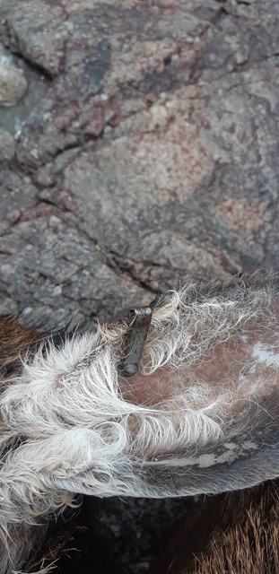 So it turned out it was one of ours. I did not see it, only the picture here but according to our guys it was not thin and looked a lot younger than the 20 years that it was (althouigh I’m suspicious on that see below). It had of course had the attention of scavengers but no broken bones or bullet holes. We had not ‘missed’ any hinds up till then so who knows, they have to die sometime and it is a credit to these imported farm deer thast they survived in the wilds of Rona with some pretty seriouis weather over the last two decades.