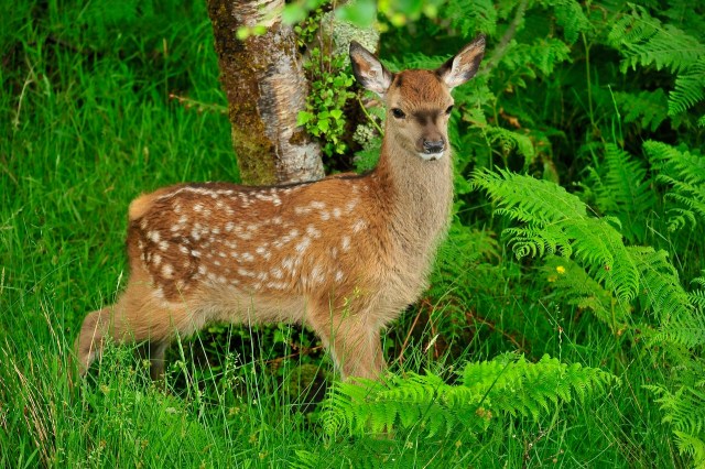 At the same time that we start culling we start to get the calves turning up, on clockwork the first one appeared tentively one evening two weeks ago, although we had heard of others spotted. The hind and calf did not stick around but they have now become more relaxed and I do believe that the hinds around the houses here like to show off their new prize.