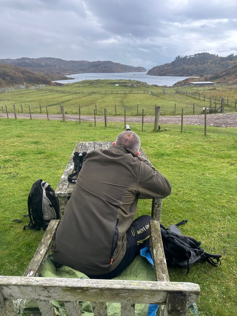 We had headed North, Marc our Second Stalker this week took Sven and Helge in the opposite direction. It was a while ago now but I remember we were bumping deer all day and to be honest there was not a lot of deer moving. Sometimes in the Rut it can just go dead, this was one of these days. We took our lunch and a break, then changed sides, we decided to head over to the West side. Again whilst taking a break, one of our party said ” look at that’, here were four people out on the West side standing on top of the highest hill taking selfies. In my time on Rona we have never had this and I sympathise with stalkers with Munros/paths that attract walkers. To me this was incomprehensible?