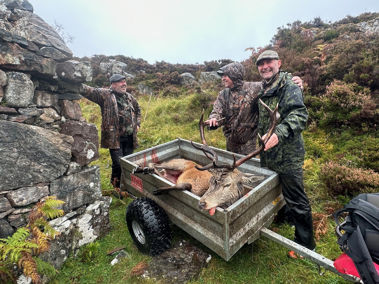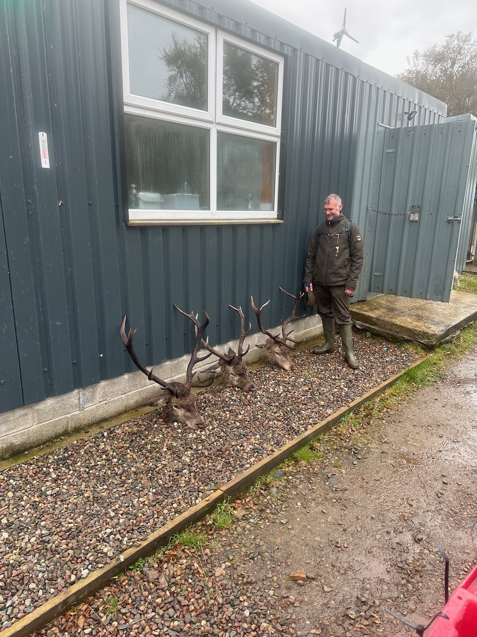 Back to the larder, skinning two stags, more beers and whiskies, even more retold tales of the stalks and happy hunters.