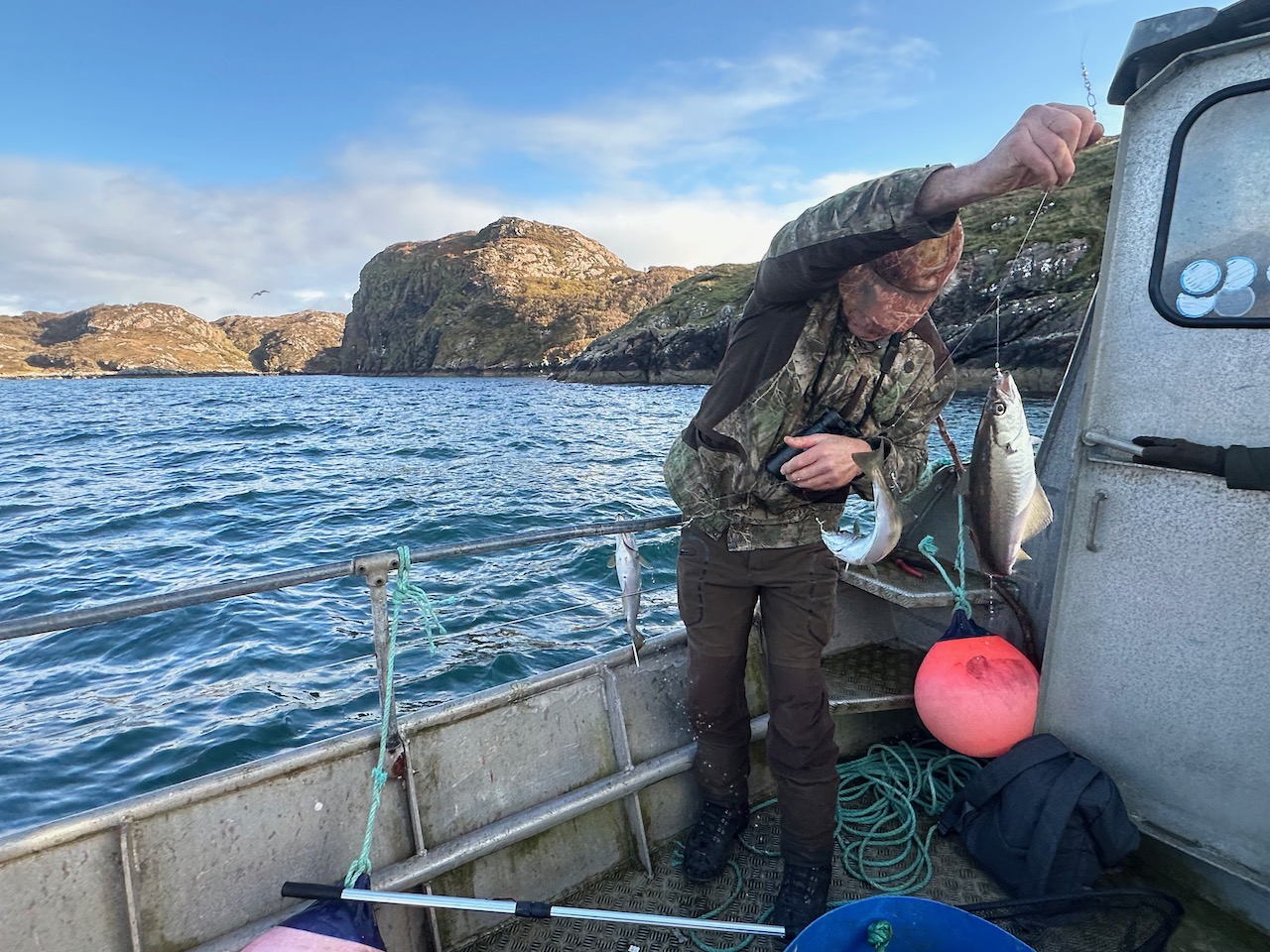 I think we got a lobster if not the remains of one, definitely a Dogfish, but we caught quite a few fish with the rod on our trips out, with Per catching the biggest pollock. Good to get out on the sea. You know it is quite a while ago now but the order of the pictures says that Inger yet again got the next stag and what a beauty.